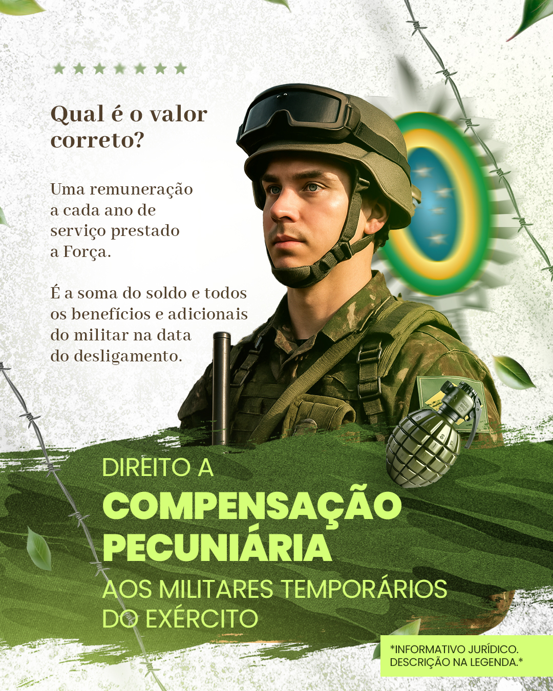 🔰🪖 Os militares temporários contratados pelas forças armadas, possuem o período de trabalho de 12 (doze) meses, chamado na legislação como engajamento, e com o limite máximo renovado de até 8 (oito) anos de Trabalho Operacional ou Administrativo perante a Função Pública Federal. Ao terminar o tempo de serviço temporário nas Forças Armadas, você tem direito de receber a compensação pecuniária em caso de licenciamento, e ajuda de custo em caso de aposentadoria/reserva. Como saber se receberei? E qual o valor correto? Trata-se de todos os valores de receita do contracheque do combatente, soldo, adicional Militar, Adicional Habilitação, adicional de localidade especial, Guarnição de fronteira em até 100km, entre outros. Todos com base no último contracheque antes do licenciamento da força Armada. O cálculo é uma remuneração por Ano de efetivo Serviço, A Disposição da Caserna ou Adido. Então, se você está prestes a terminar o seu tempo de serviço ou foi para a reserva, não deixe de verificar os benefícios que você tem direito! 🪖🔰Alistamento Feminino Militar